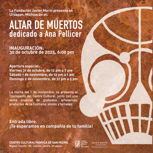 Del miércoles 24 de septiembre al miércoles 22 de octubre de 2025, participa en la: Subasta de arte En beneficio del Centro Cultural Fábrica de San Pedro Accede a la plataforma, consulta el catálogo de obra y haz tu mejor oferta: https://fundacionjaviermarin.glide.page/dl/877e57 Cada semana se subastará una sección de 15 obras: Sección 1: del miércoles…