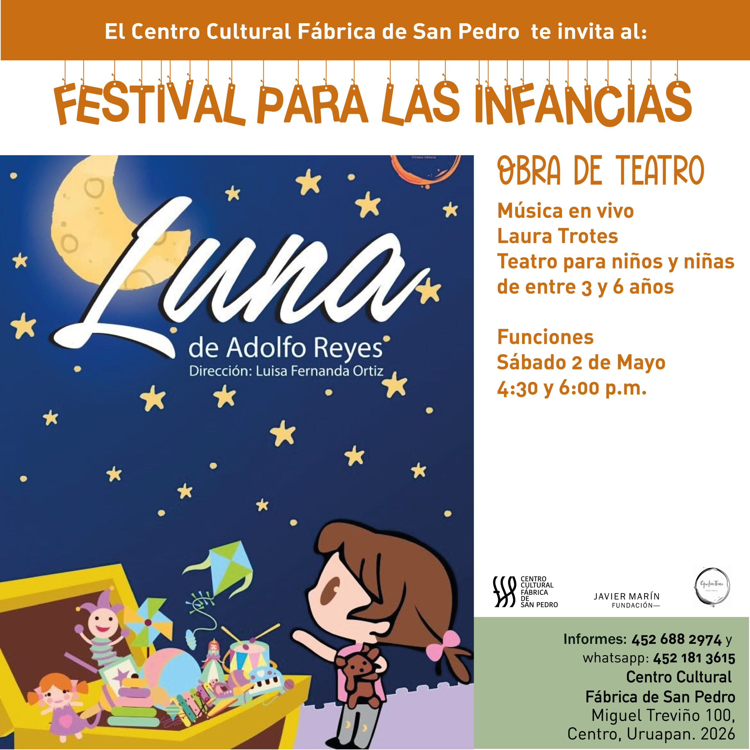 Funciones: Sábado 2 de mayo, 4:30 y 6:00 pm